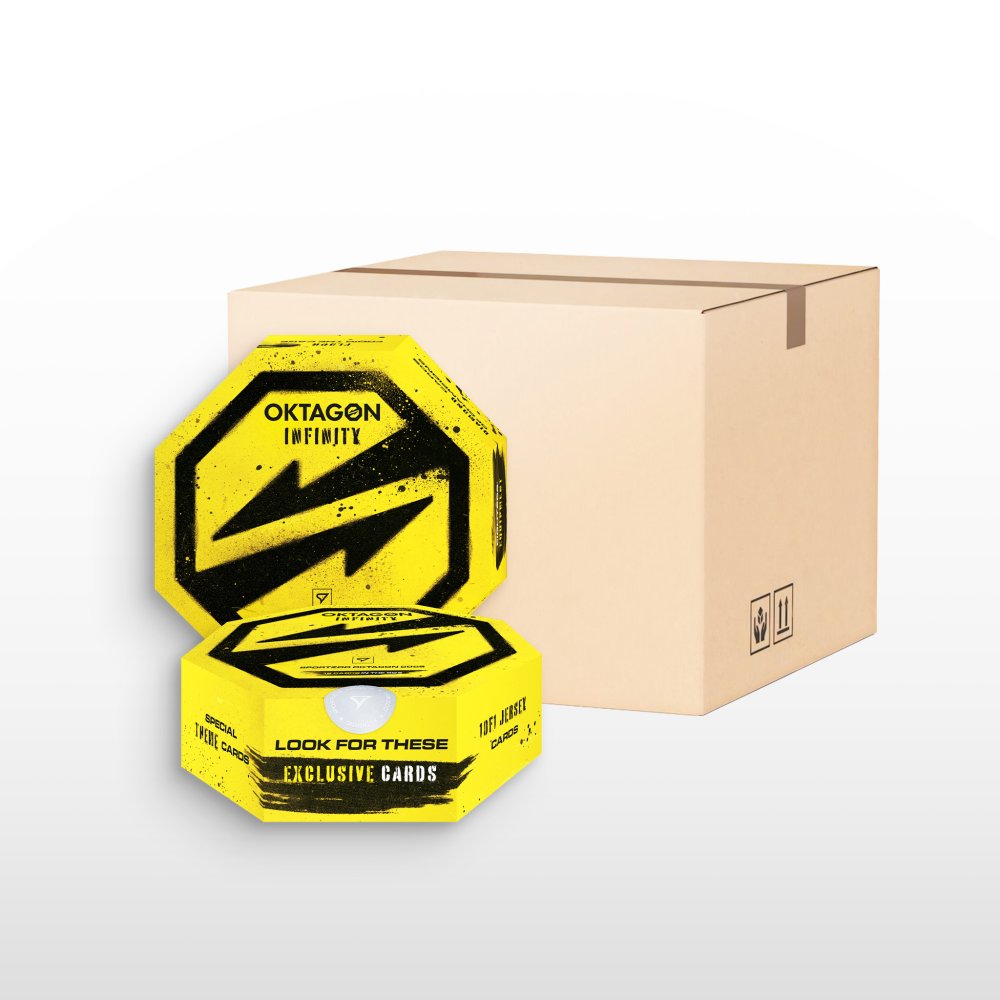 Oktagon Champions is a premium, upgraded set that features embedded diamond-like pieces inspired by the gems on the championship belt and showcases past and present champions. It is available in three parallel versions: Clear Diamond x/15, signed Blue Diamond Auto x/5, and an exclusive Golden Diamond Auto 1-of-1.